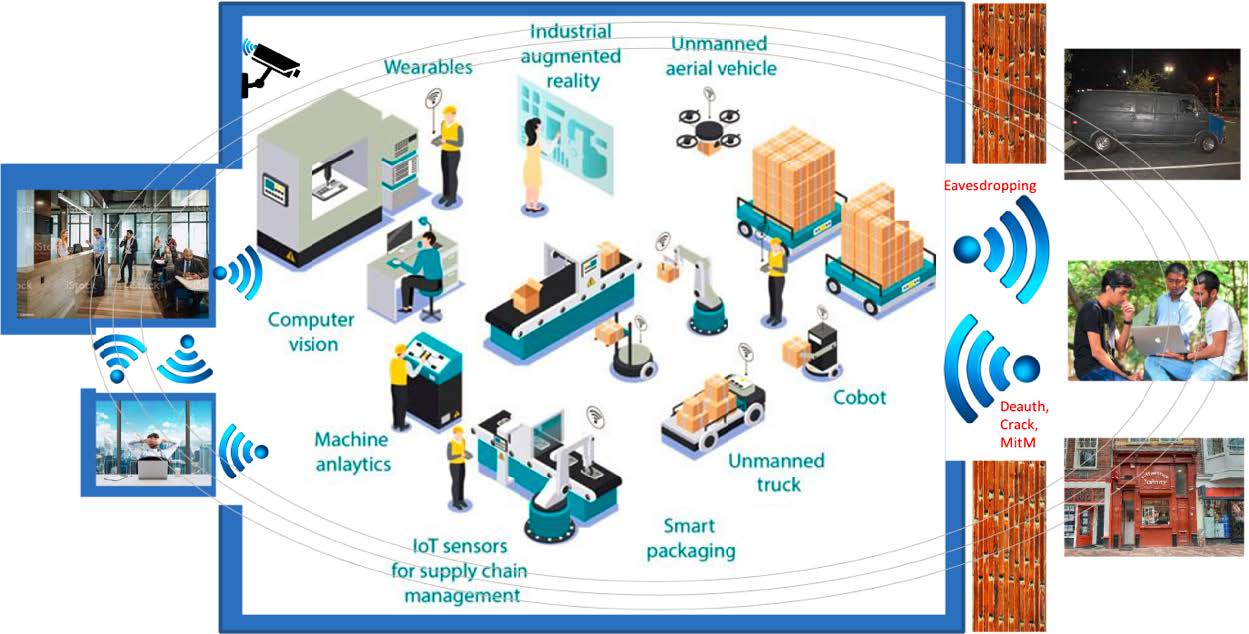 大多数 M2M 数据不包含敏感信息,这导致一些机构忽略了无线通信的风险,认为最坏的情况就是丢失一些“不重要的数据”。 事实并非如此,因为无线攻击的真正危险是流程中断,或是一次总体网络破坏的垫脚石。网络攻击者不会直接从攻击目标开始 --- 他们会寻找最薄弱的环节,然后从他们看到“有趣”目标向前行进。 工业4.0智能工厂已将无线空间作为最薄弱的环节。